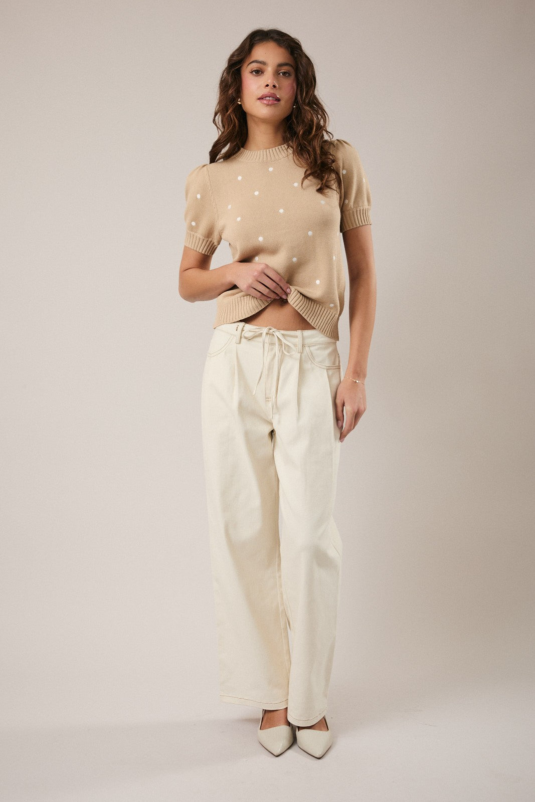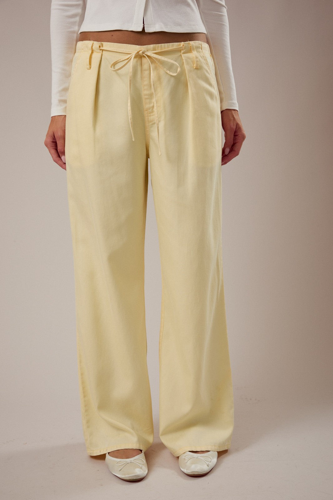 (pre order march) Low-rise Front Pleated And Tie Detailed Pants