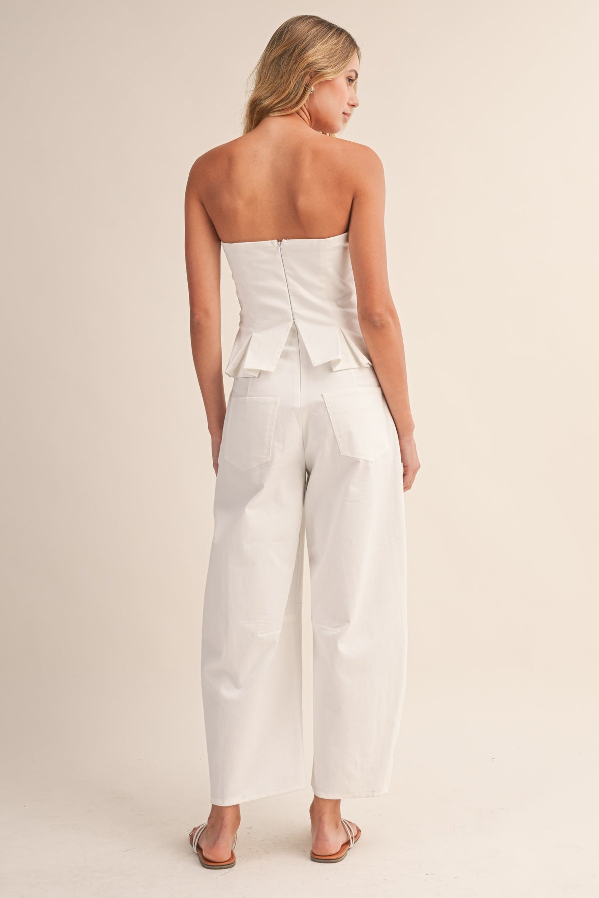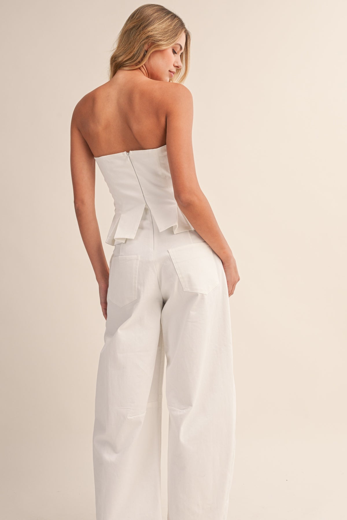 (pre order may) Pleated Strapless Peplum Barrel Jumpsuit