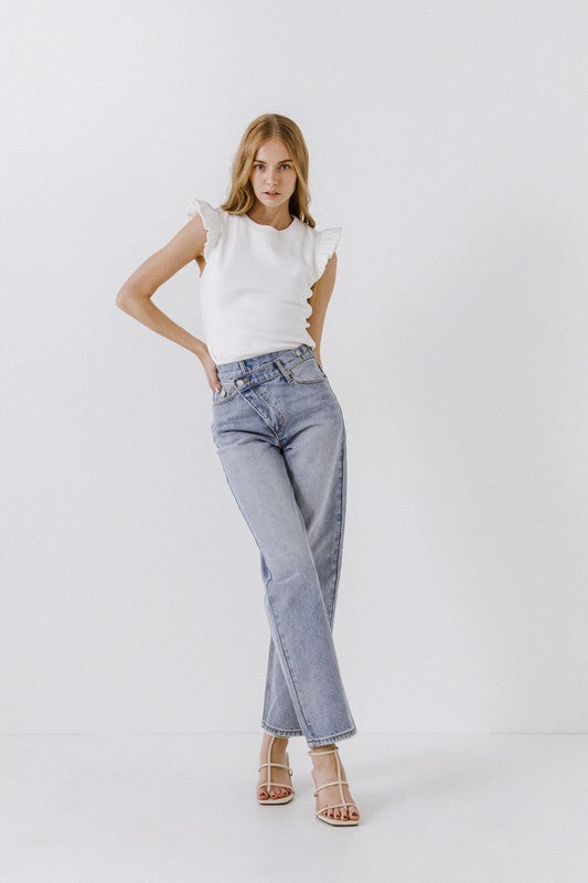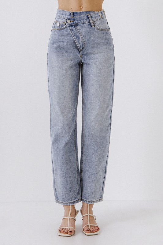 Do you like your wardrobe to be a bit off-center? These asymmetrical wrap jeans are perfect for the lady who wants to be noticed for not following the standard fashion trends! Fun and comfortable to wear!