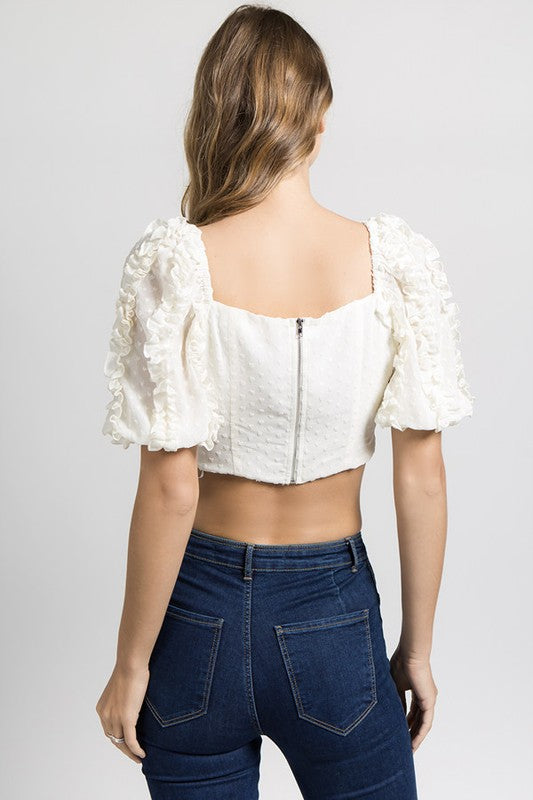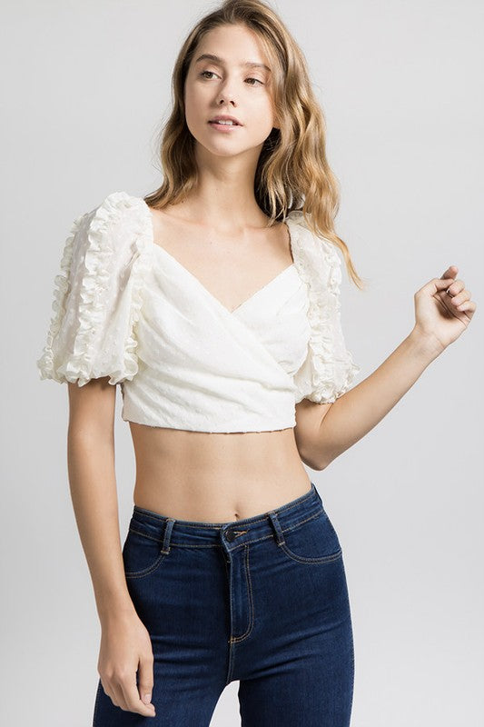 Cross Front Top with Ruffle Puff Sleeve